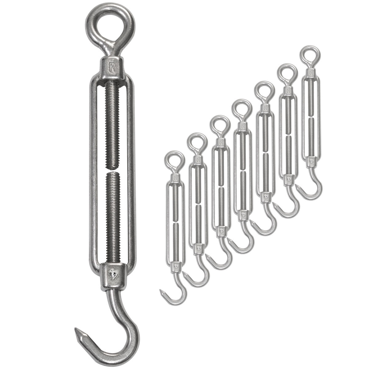 8x Edelstahl Spannschloss Spannschraube D-4mm - M4 - Öse+Haken - V2A Seilspanner Segelspanner für Drahtseil - 10-14cm lang Wantenspanner Bruchlast 100 kg