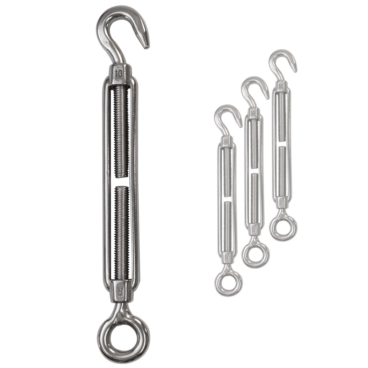 4x Edelstahl Spannschloss Spannschraube D-10mm - M10 - Öse+Haken V2A - Seilspanner Segelspanner für Drahtseil - 22-34 cm lang Wantenspanner Bruchlast 800kg
