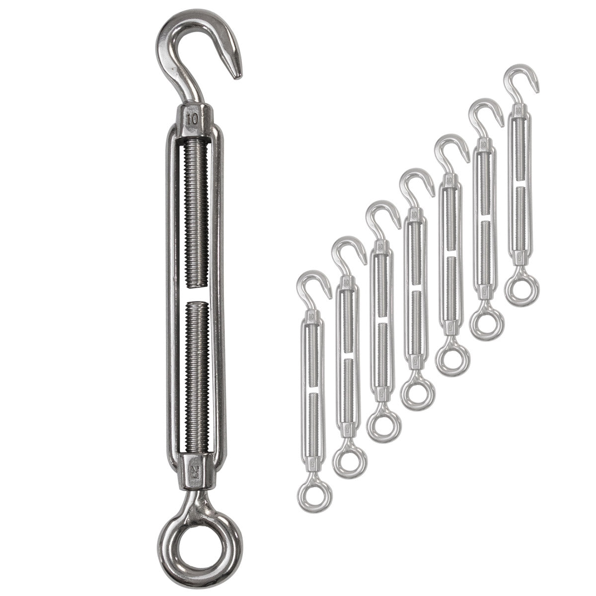 8x Edelstahl Spannschloss Spannschraube D-10mm - M10 - Öse+Haken - V2A Seilspanner Segelspanner für Drahtseil - 22-34 cm lang Wantenspanner Bruchlast 800kg