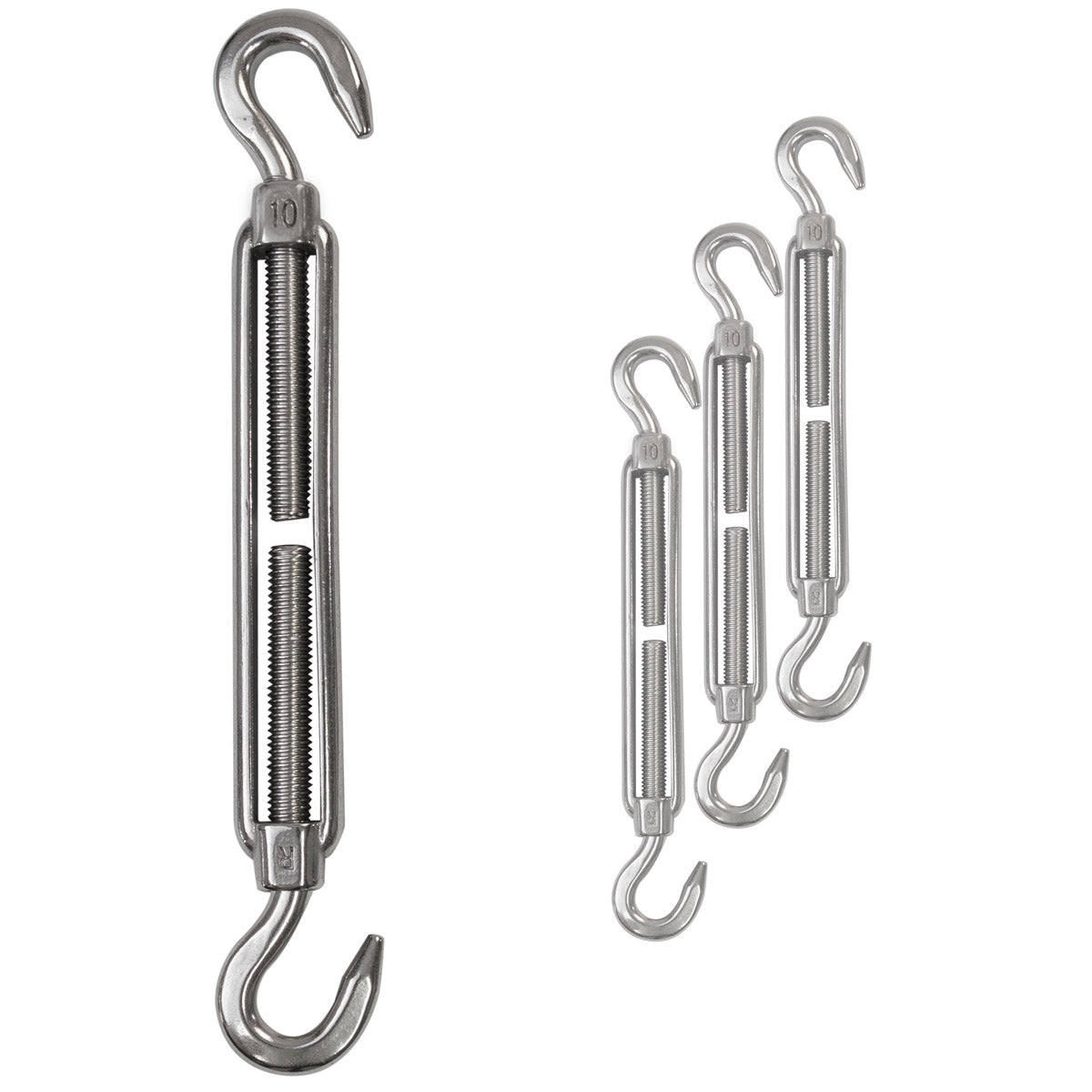 4 x Edelstahl Spannschloss Spannschraube D-10mm - M10 - beidseitig Haken - V2A Seilspanner Segelspanner für Drahtseil - 22-34 cm lang Wantenspanner Bruchlast 800kg