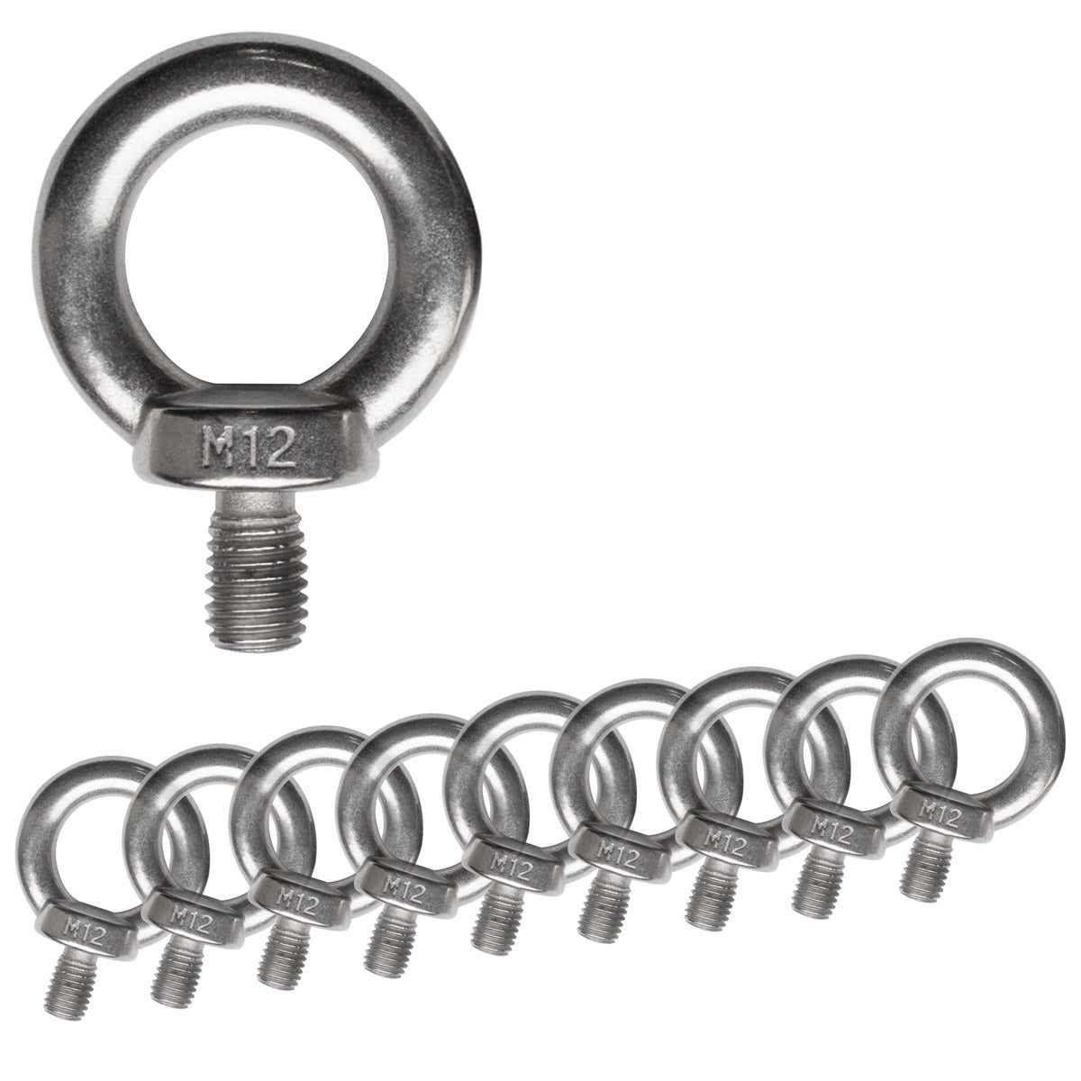 10x Edelstahl M12x20mm Ringschraube V2A 304 Ösenschraube Traglast 1000 kg Augbolzen Augenschraube Schraubösen Ringbolzen Ösenbolze Eye bolt