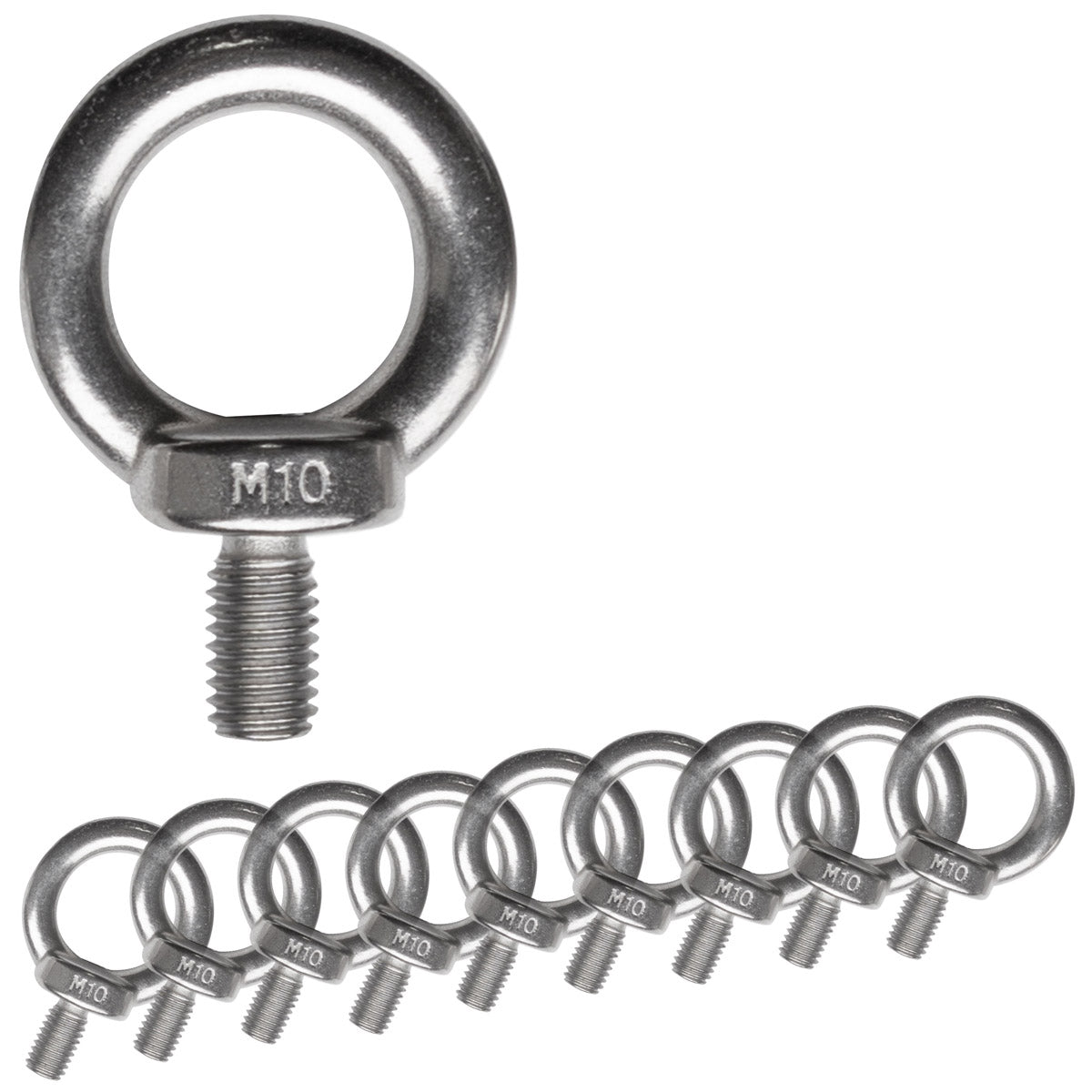 10x Edelstahl M10x17mm Ringschraube V2A 304 Ösenschraube Traglast 600 kg Augbolzen Augenschraube Augschraube Schraubösen Ringbolzen Ösenbolze Eye