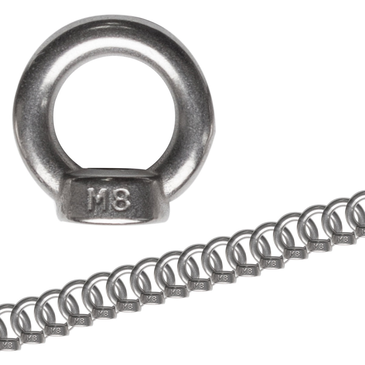 20x Edelstahl M8 Ringmutter V2A 304 - Ösenmutter Augenmutter Ringösen Traglast 350 kg Hebegeräte Hebezubehör Heberingmutter Hebering Loch für Kabelseil Eye nut Ähnlich-DIN582