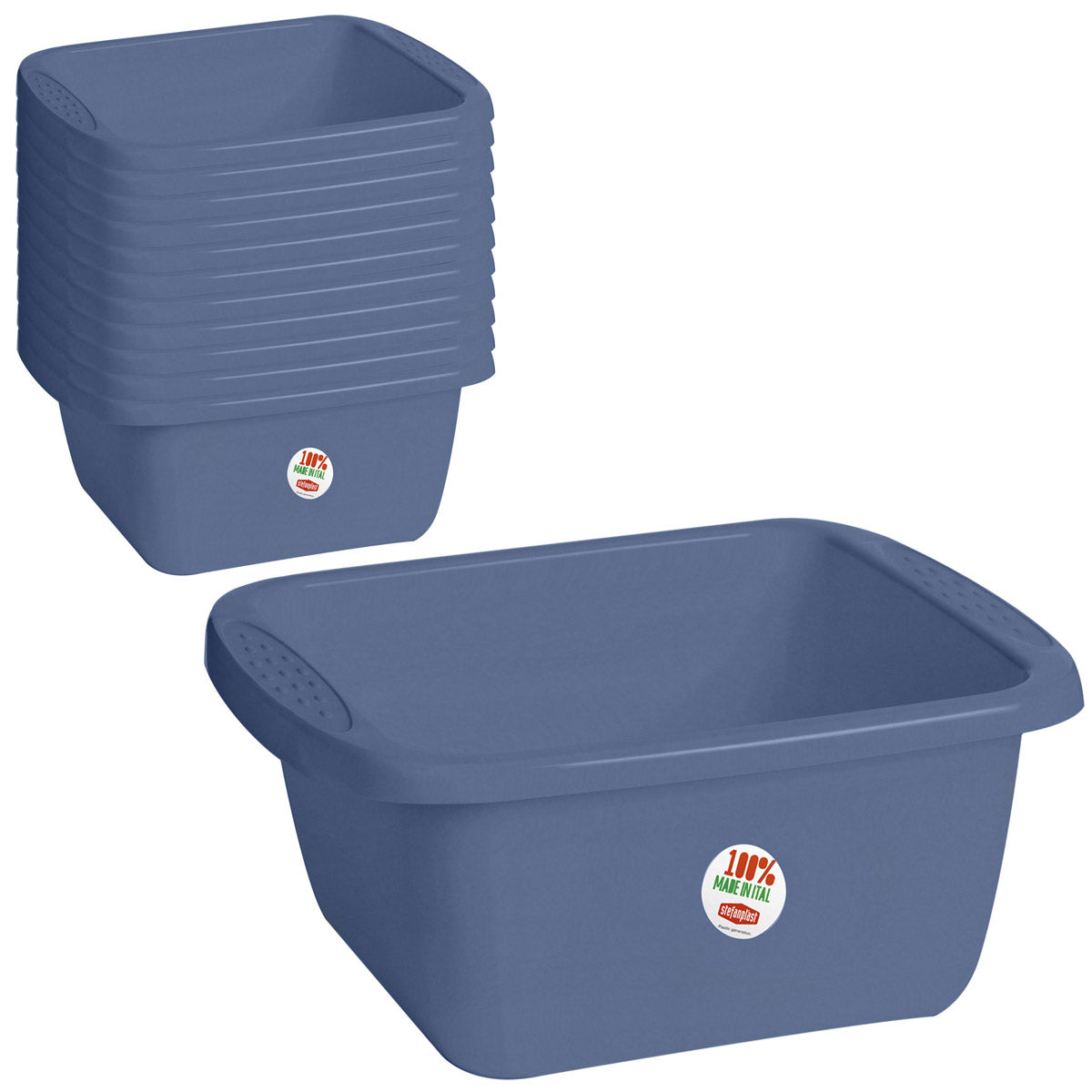 12x Schüssel 10 Liter rechteckig 39x35x15 cm Blau - Haushaltsschüssel Waschschüssel Universal Küchenschüssel Spülschüssel Kunststoff Fußbad Pflege Camping - nestbar