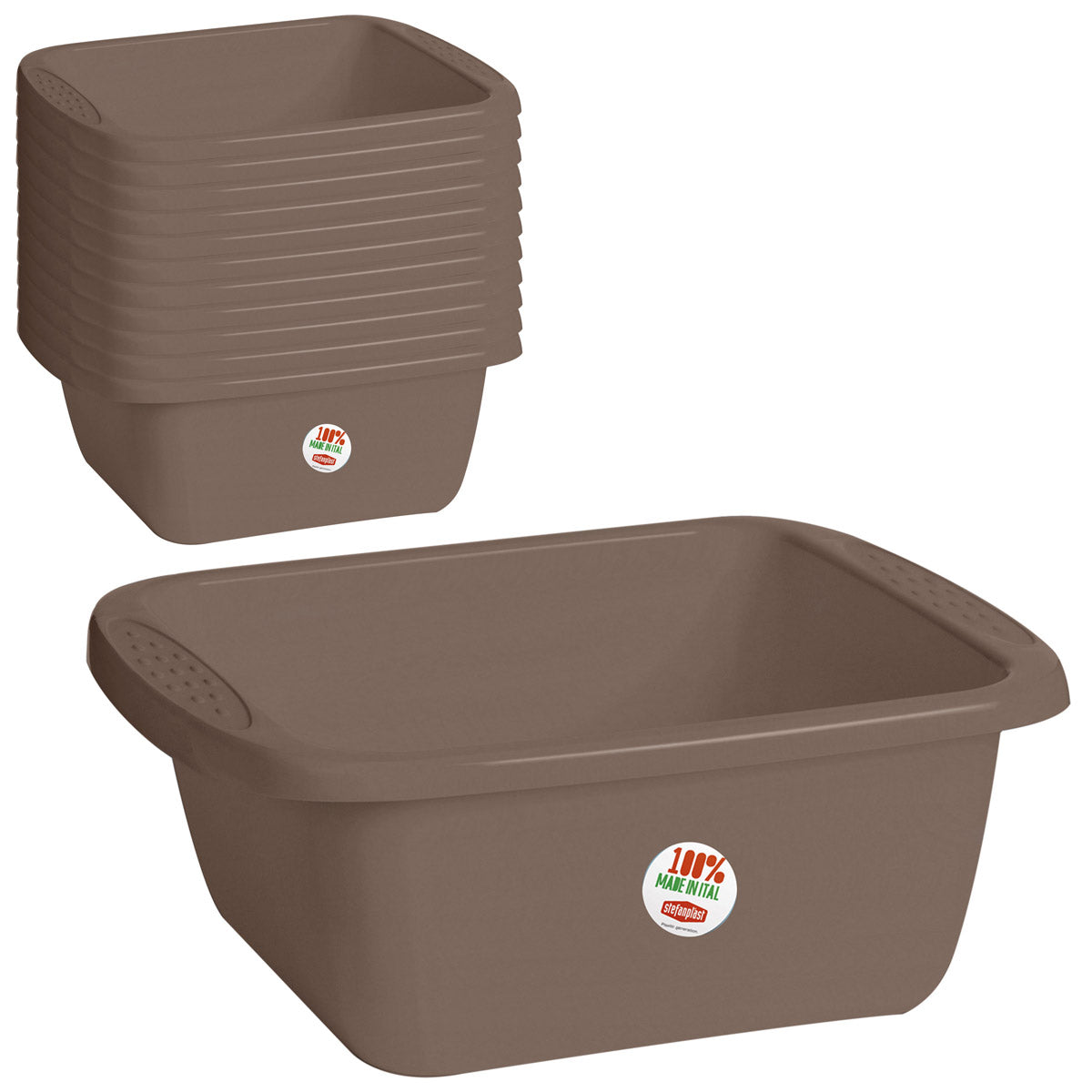 12x Schüssel 17 Liter rechteckig 45x35x18 cm Braun - Universal Haushaltsschüssel Waschschüssel Küchenschüssel Spülschüssel Kunststoff Fußbad Pflege - nestbar