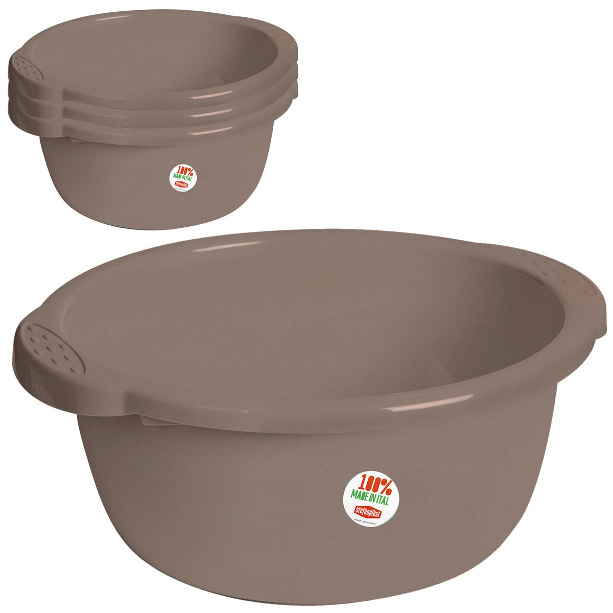 4x Schüssel 14 Liter rund D-40x18 cm Braun - Haushaltsschüssel Waschschüssel Universal Küchenschüssel Spülschüssel Kunststoff Fußbad Pflege - nestbar