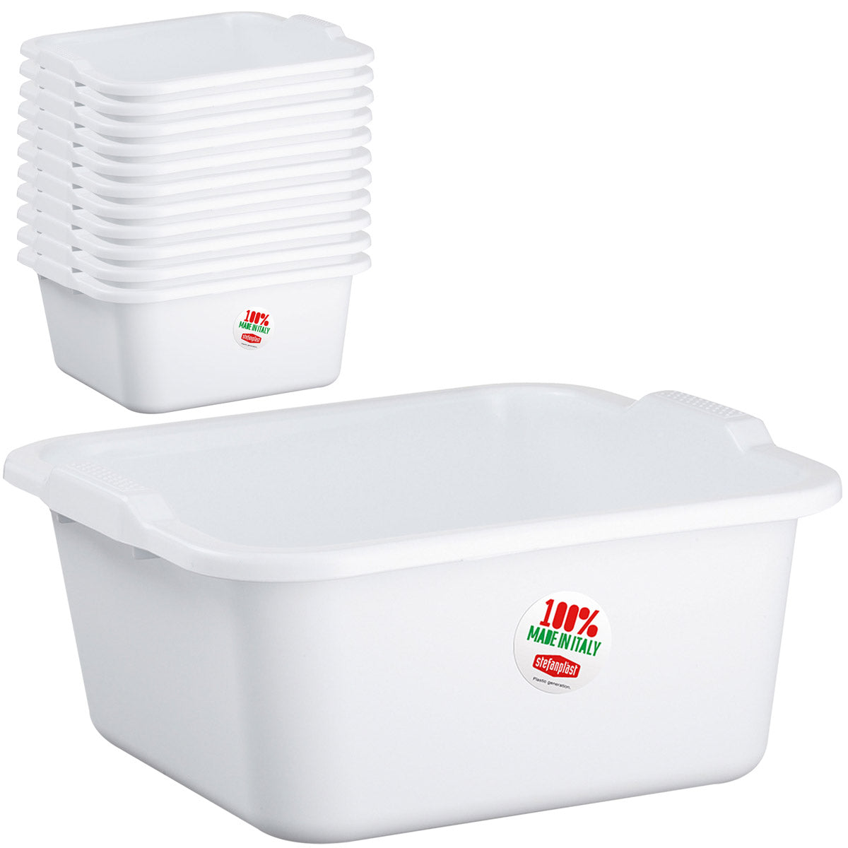 12x Schüssel 11 Liter quadratisch 34x33x16 cm weiß - aus PP-Kunststoff - Universal Haushaltsschüssel Waschschüssel Küchenschüssel Spülschüssel Kunststoff Fußbad Pflege - nestbar