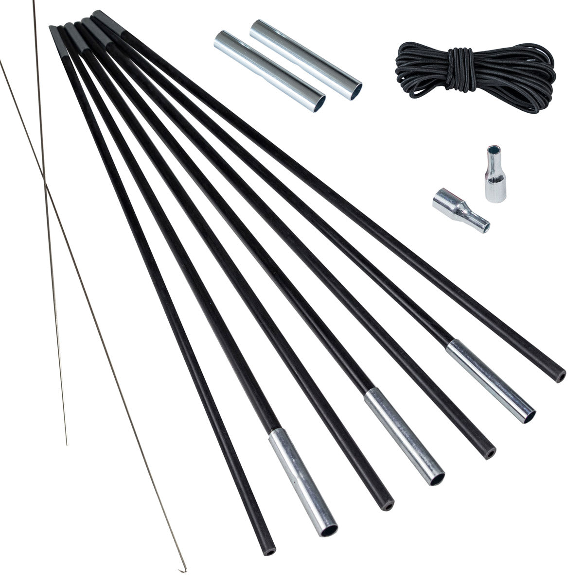 FIBERGLASZELTSTAB Ø 11MM - 4 METER - 7 SEKTIONEN: Schwarz - mit 2 Endstücken und 2 zusätzlichen Hülsen - mit Einfädelhilfe aus Stahl - Leicht- stabil - flexibel - MAßE:...