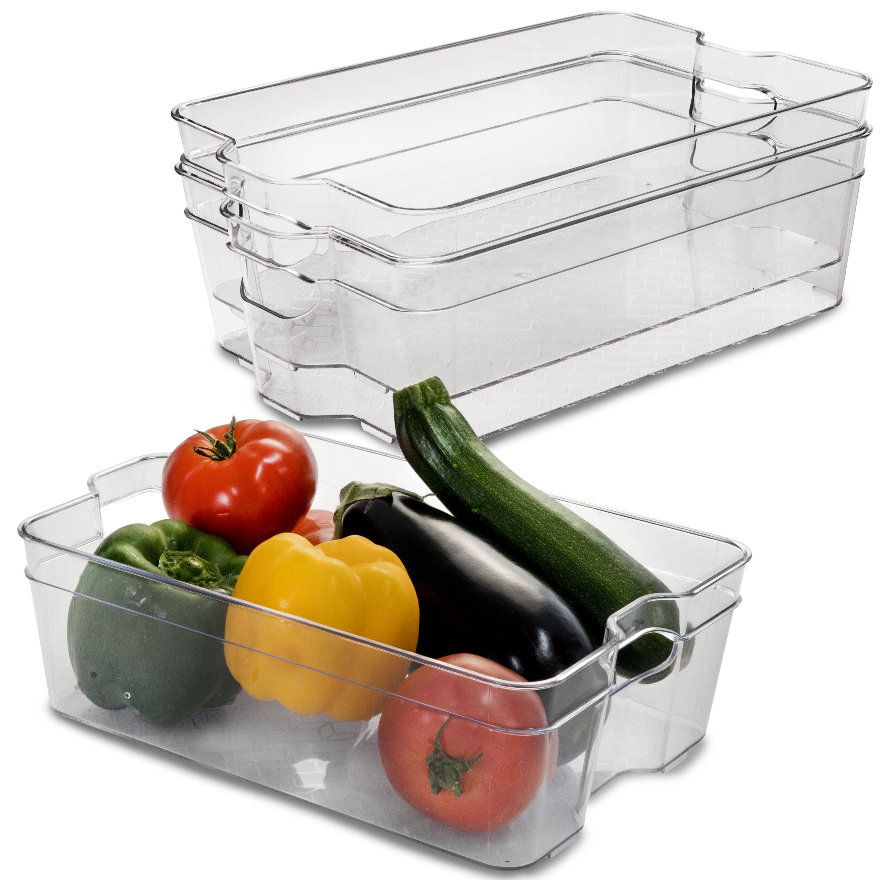 Kühlschrank-Organizer 31x21x9,5 cm durchsichtig stapelbar mit Griff - Aufbewahrungsbox Fridge Organizer Kühlschrankbox BPA-frei Speisekammer Bad Vorratsschrank transparent Küchenschrank Box