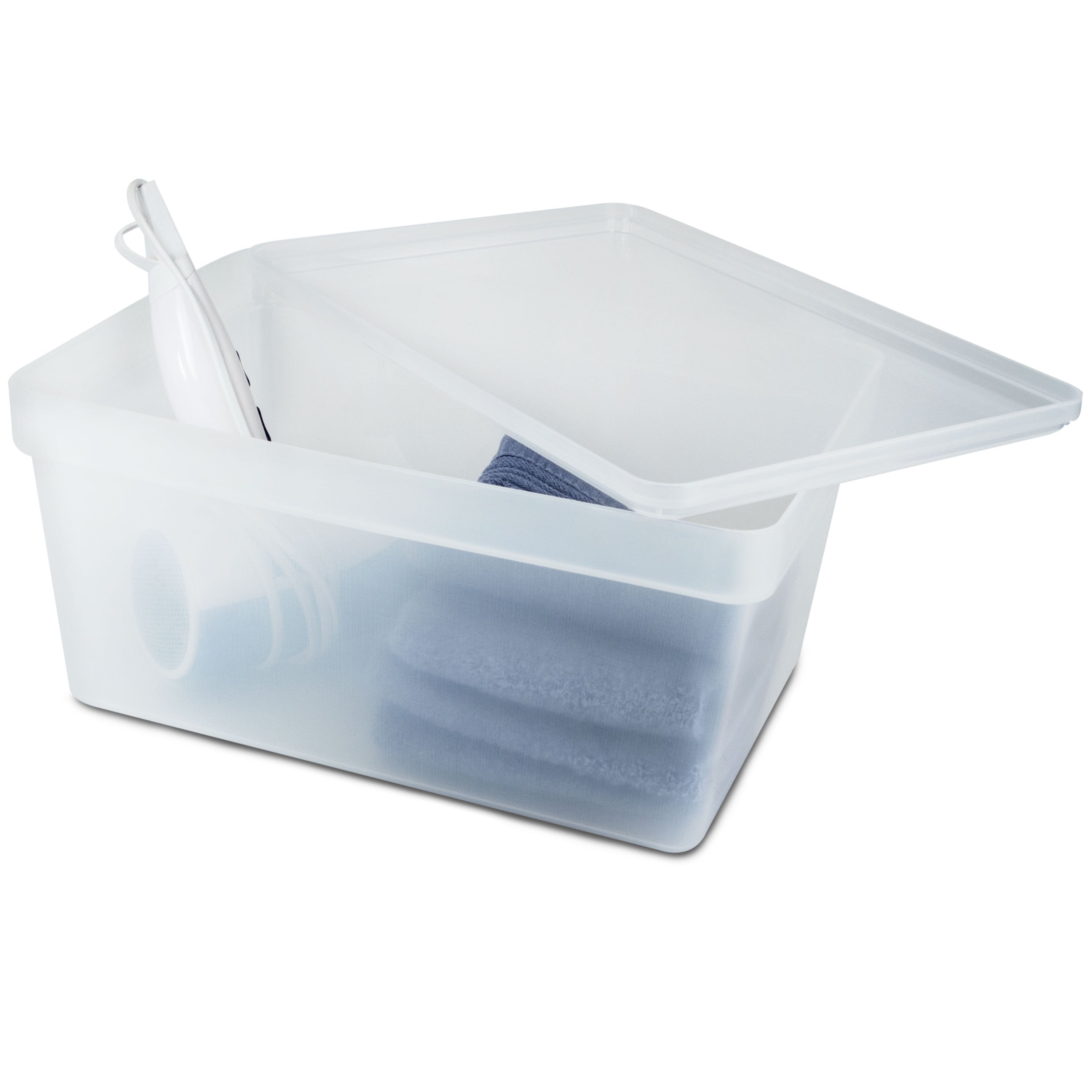 ORDNUNGSBOX MILCHIG-TRANSPARENT MIT DECKEL: Stapelbar mit Deckel - 18 cm hoch - Außenmaße: ca. 36,5 x 26 x 18 cm - Innenmaß Boden: ca. 33 x 23 cm - DINA4-Format...