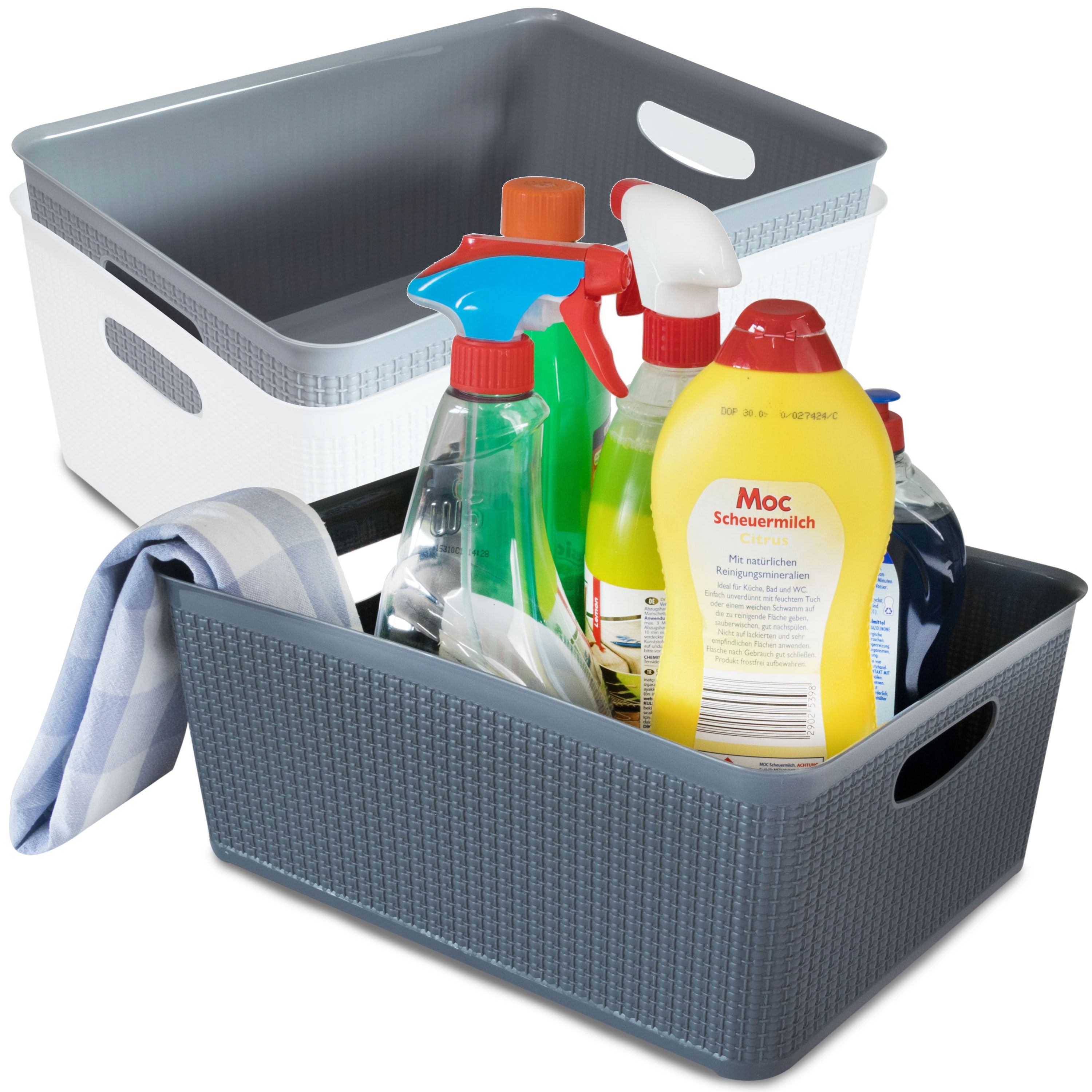 Ordnungsbox-Set WEIß-GRAU-ANTHRAZIT - 33x26x13cm - 10 Liter - DINA4 - Rattanoptik Schubladenorganizer Ordnungskorb Schublade - Organizerbox Ordnungssystem Kunststoff Aufbewahrung Bad Korb Schrank Schreibtisch