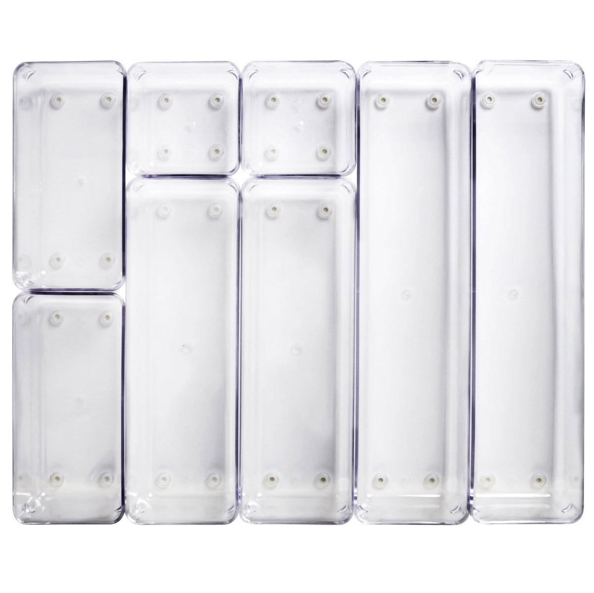 Schubladen Ordnungssystem 8 Teile 32x40 cm 4 Größen 5,5cm hoch klar transparent Antislip - Organizer für Schminktisch Kosmetik Bad Küche Kiste Besteck Aufbewahrungsbox Ordnungsbox Schubladeneinsatz